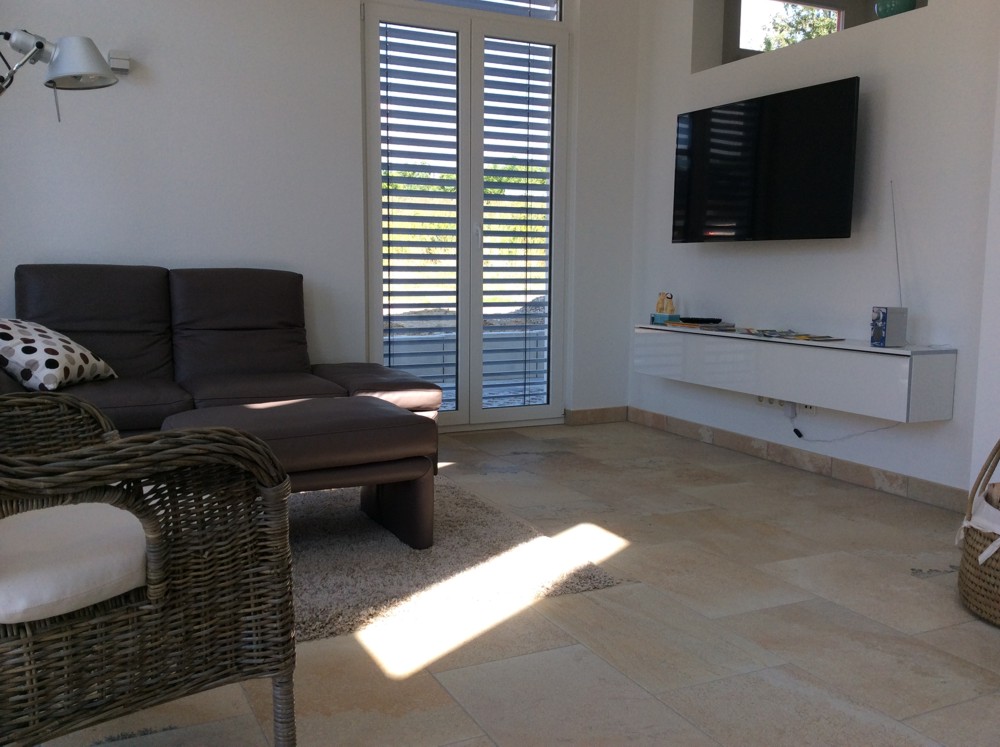 Beide Küchen sind mit modernen Elektro-Geräten ausgestattet (Mehrplatten-Elektro-Herd, Mikrowelle, Spülmaschine, Kühl- und Gefrierschrank, Kaffee-Maschine, Toaster, Wasserkocher). In den Wohnräumen steht Ihnen moderne Unterhaltungselektronik wie 50 ´´-TV, Radio, DVD- und CD-Player (nur in Haus 6a) zur Verfügung. Auch die Schlafräume sind jeweils mit einem modernen TV-Gerät ausgestattet. Waschmaschine und Trockner finden Sie im Hauswirtschaftsraum.